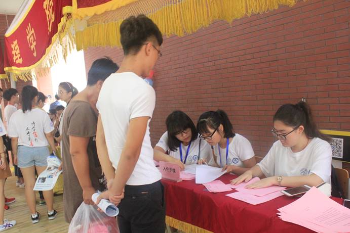 为使工作有序进行,学院组织了一个志愿者团队,帮助新生办理入学注册、宿舍入住等手续。志愿者向新生简单的介绍了学校的楼层分布,帮助家长搬运行李,热心欢迎每一位新生的到来,让刚踏入大学校园的新生们感受到了不一样的温暖。