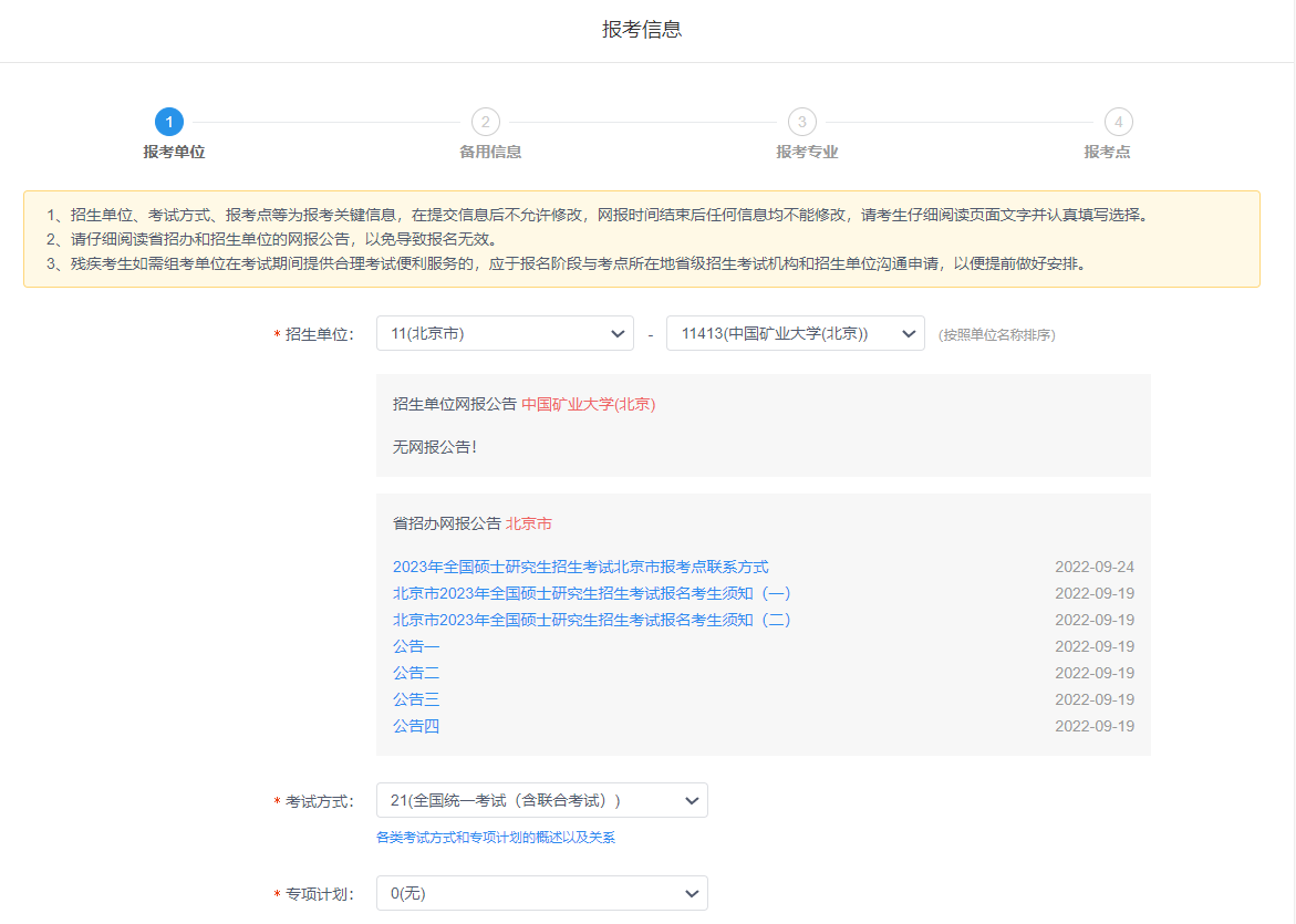 报名时必须在相应的栏目内正确填写报考院系、专业和研究方向、选考科目及其对应的代码凡未按要求报名、网报信息误填、错填或填报虚假信息而造成不能考试或录取的,后果由考生本人承担。填写要求如下: