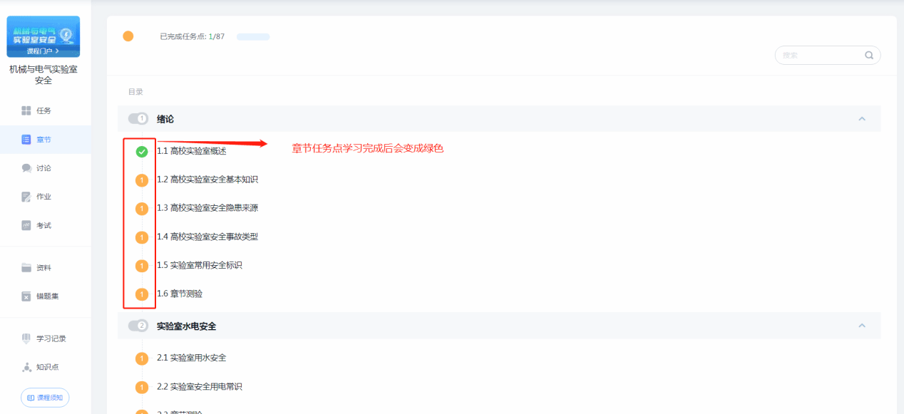 2.进入课程后,左侧为学习导航,可即时收到老师发布的学习任务、考试、查看自己的学习记录。任务点为必须完成的学习内容!