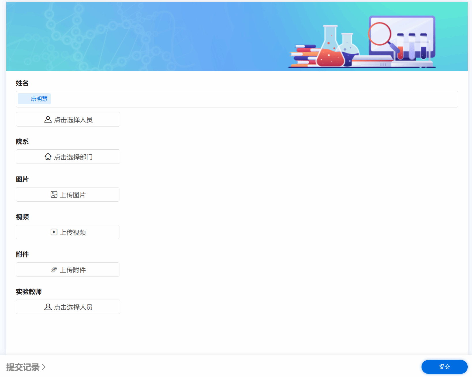 登录个人空间,点击应用中心,选择实验室安全责任书。选择学院信息,拍摄上传图片,点击“提交”即可。点击“提交记录”可以查看已提交内容。
