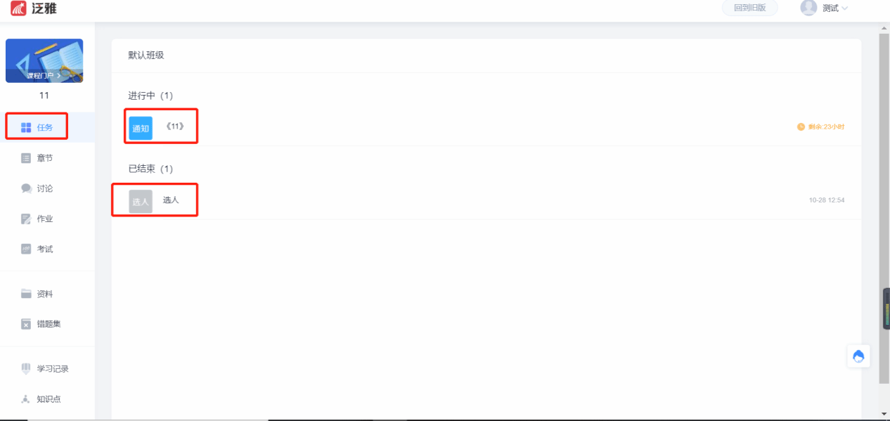任务:可以在任务界面接收查看由课程老师发送的各种课程通知、活动等。