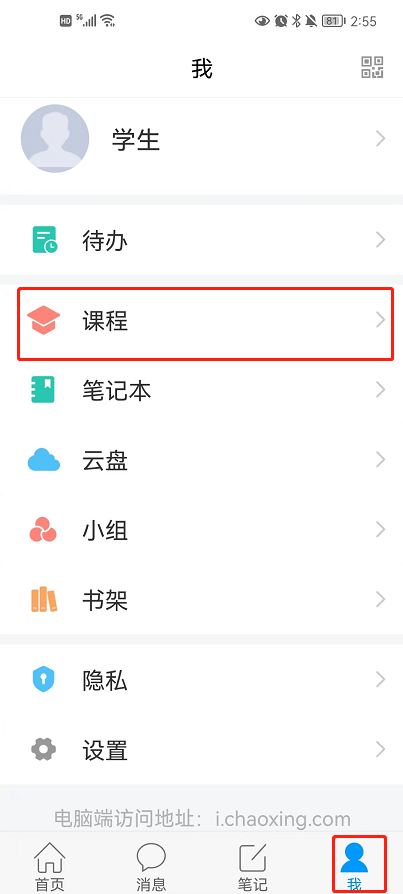 1.点击底部菜单【我】—【课程】,可进入课程列表,再选择要学习的课程,即可进入课程详情,章节内容即为学习内容。