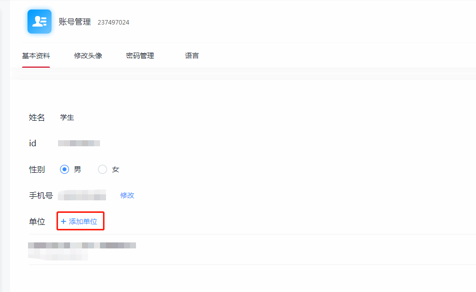 2)若是之前手机号已注册过:可以直接使用手机号+密码或者手机号+验证码的方式登录,登录后在【账号管理】-【添加单位】里输入单位UC码:296958以及学号进行学校添加。