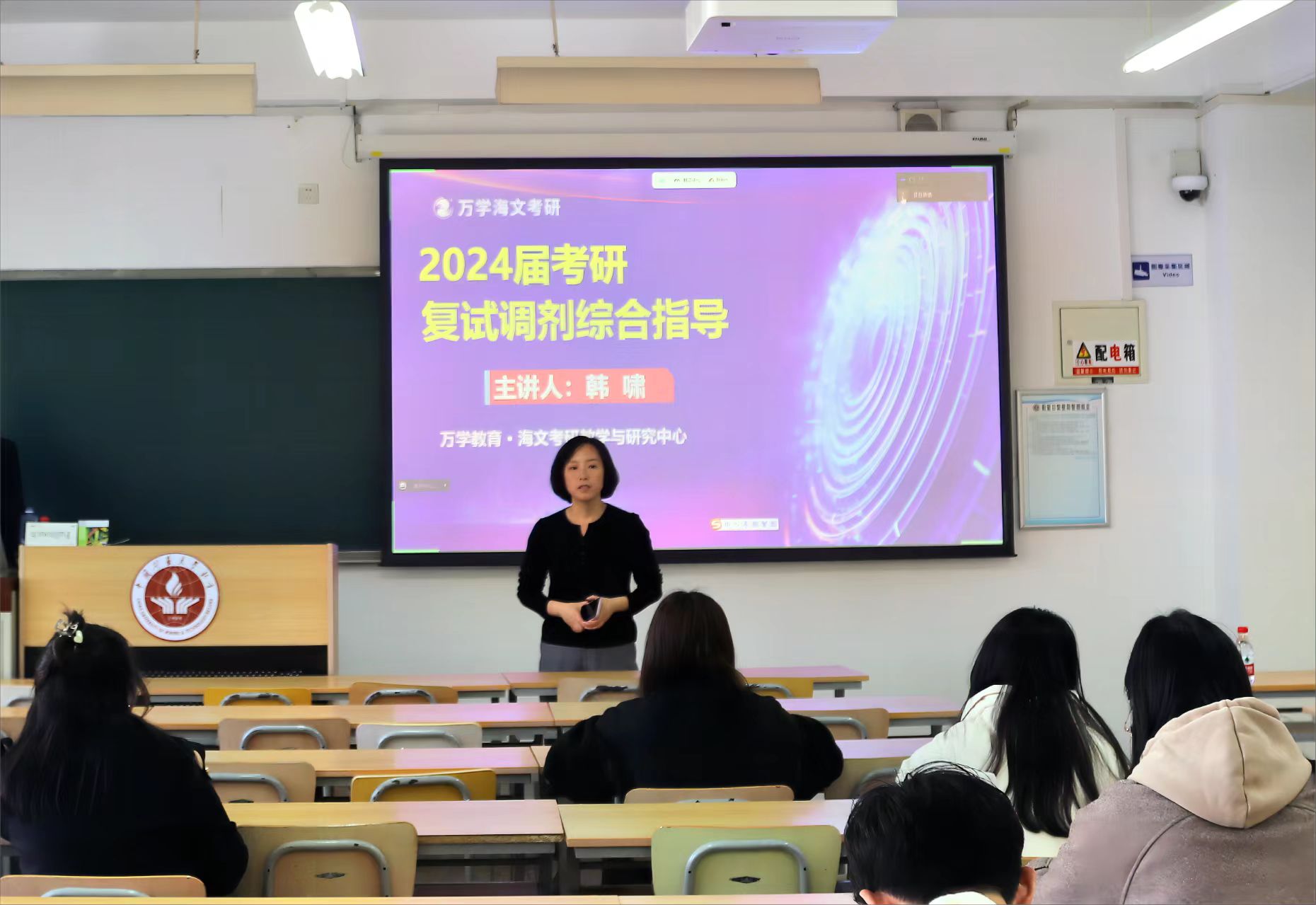 董凤姣对韩啸的到来表示热烈欢迎,对韩啸老师的精彩分享表示衷心感谢。同时她也提出三点建议,一是要端正态度,认真准备复试和调剂。二是要与学院老师及时主动沟通交流,充分利用身边资源。三是要对自己充满信心,不管考研结果如何,继续勇往直前,追逐梦想。