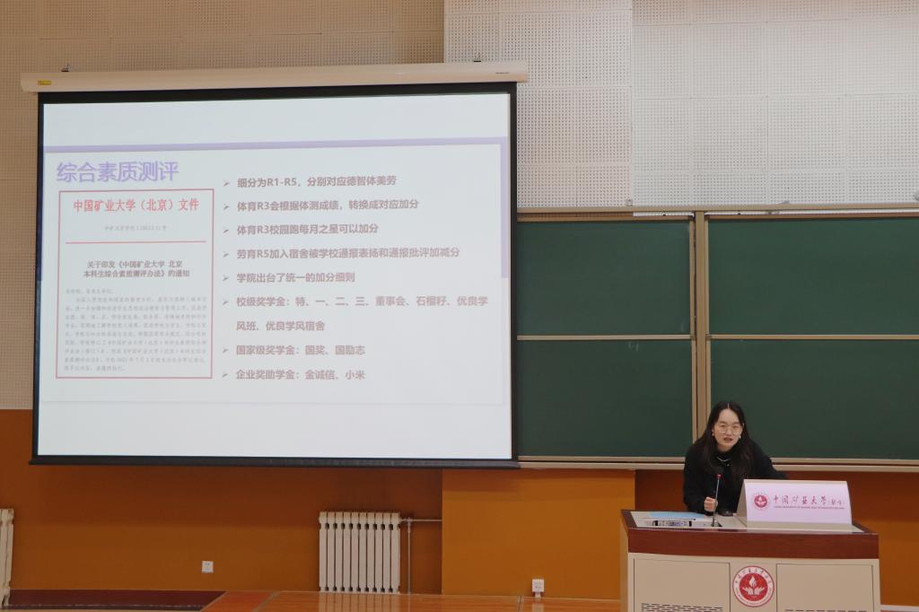 穆子君从德智体美劳五个方面解读了综合素质测评细则,随后介绍了学校保研政策以及开云(中国)推免细则,展示了近三年的保研去向,鼓励同学们认真规划学习生活。
