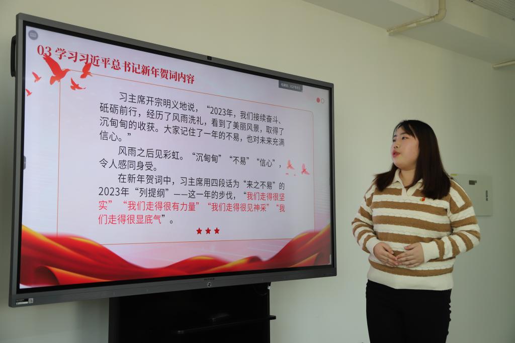 会上,穆子君带领党支部成员翻译了习近平主席新年贺词,组织观看了习近平主席新年贺词视频。英语本科党支部成员田静莹领学了新年贺词内容并进行重温入党誓词领誓。通过学习,与会师生纷纷表示,习近平主席新年贺词内涵丰富,我们要深刻领悟学习,从中汲取奋进力量,将小我融入大我,在新征程上为学院和学校发展、为党和国家作出更大贡献。