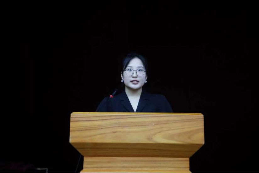 在校生代表、行政管理2021级本科生杨墨从“适应、成长、坚持”三个方面分享感悟,号召同学们踔厉奋发、笃行不怠,在学思践悟中感悟青春伟力。