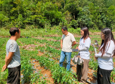 基于此模式,琴棋村利用之前在龙收屯整合的18亩耕地,以低价租赁给村内种养大户进行辣椒种植试验。实践团实地走访了辣椒种植基地,并和辣椒基地的经营人韦必棵进行了深入交流,韦必棵介绍道,村合作社将土地低价租给他,计划在取得一定收益后,将辣椒种植推广至其他村民,带动农民增收致富。实践团认真了解辣椒基地的具体运营方式和市场行情等,分析辣椒种植的可行性和预计收益,并与驻村第一书记和经营人积极讨论,交换想法。