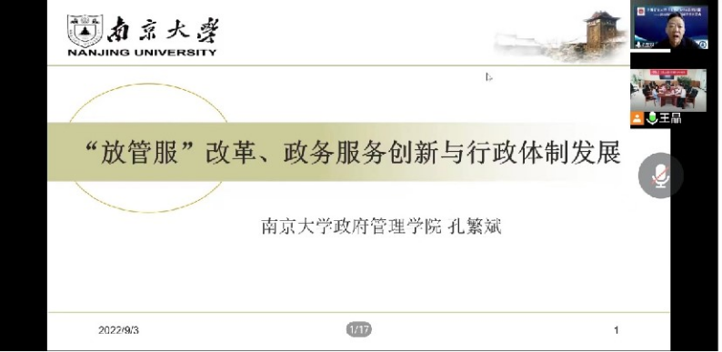孔繁斌教授从“放管服”改革的历史发展路径出发,讲述了放管服政策体系的构成、理论内涵以及发展演变。孔教授还以2021年7月南京境外输入性新冠疫情事件、“金陵应急宝”智能政策产品等生动案例,结合理论与现实,对政务服务创新的内涵、面临的挑战与行政体制发展趋势作详细介绍。