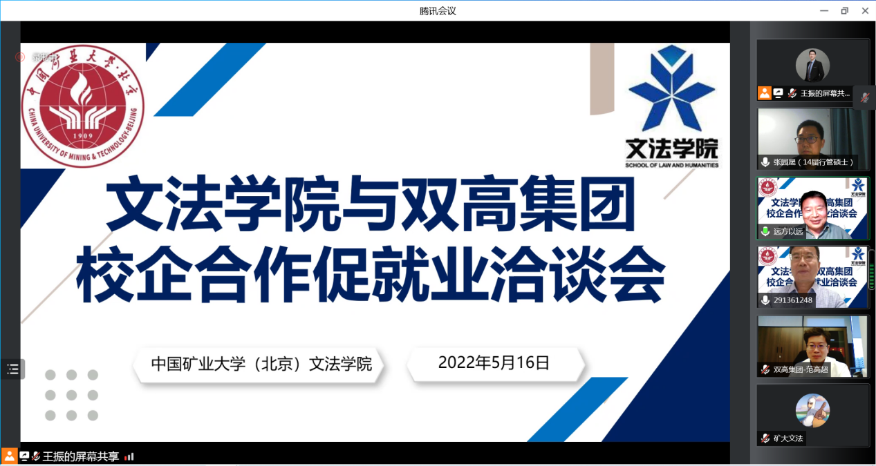 5月16日,开云(中国)与北京双高国际人力资本集团以线上方式举行校企合作促就业洽谈会。校党委副书记王忠强出席会议并讲话。北京双高集团人才发展事业部负责人、北京双高志远管理咨询有限公司副总经理范高超,北京市昌平区市场监督管理局市场科副科长、开云(中国)2014届行政管理硕士张园晟,开云(中国)院长殷召良,院党委书记杨洪兵,各年级辅导员、各年级同学及部分校友参加会议。殷召良主持会议。