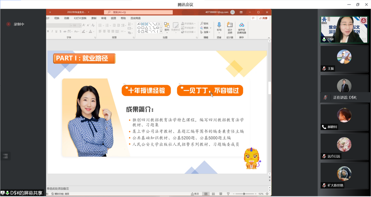 丁亚亚从自身求职经历向同学们讲解了升学、就业路径,忠告同学们一定要务实。同时,她提醒同学们在求职时要了解市场需求,培养心理、情绪调节能力,增强诚信意识,不断拓展人脉,最终顺利就业、高质量就业。