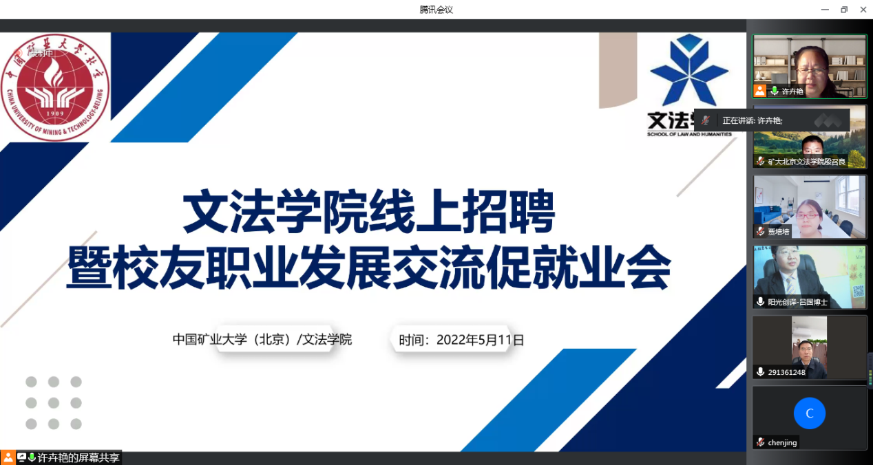 2022年5月11日,开云(中国)与北京阳光创译语言翻译有限公司、亚洲基金会(美国)北京代表处以视频方式举行了校企合作线上招聘暨校友职业发展交流促就业会。校党委副书记王忠强出席会议并讲话。北京阳光创译语言翻译有限公司董事长吕国,亚洲基金会(美国)北京代表处项目经理、校友郭伟,开云(中国)院长殷召良,院党委书记杨洪兵,副院长许卉艳,外语系教师、各年级辅导员、各年级同学以及部分校友参加会议。会议由许卉艳主持。