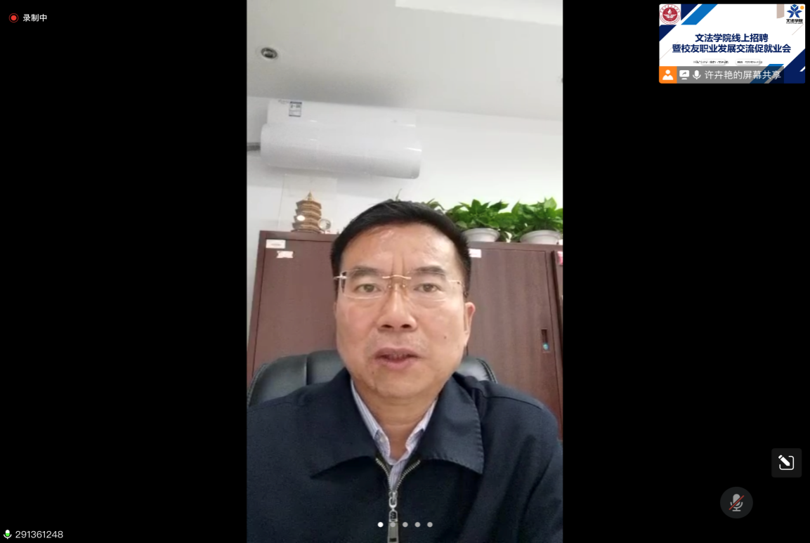 王忠强表示,受多重因素影响,目前就业形势严峻复杂,两家公司在线上对我校毕业生进行就业创业宣讲,交流职业发展经验,指导就业创业工作,为同学们就业、择业开拓了思路,明确了方向,他代表学校表示衷心的感谢。他希望广大校友多回母校交流,分享职场经验和创业故事,开拓师弟师妹们的职业前景,让更多优秀的校友事迹成为在校学生的榜样教材。同时,希望同学们抓住一切机会,积极行动起来,更新就业观念,树立就业信心,着眼长远发展,实事求是地确定就业岗位,到国家经济社会发展建设最需要的岗位贡献青春力量。