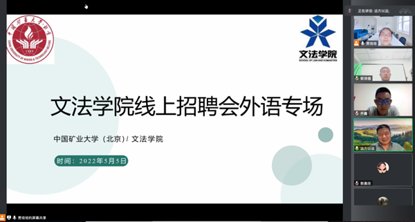 5月5日,北京思高乐教育科技有限公司和北京欧冶教育咨询有限公司与中国矿业大学(北京)开云(中国)校企合作促就业外语专业专场招聘会在线上举行。校党委副书记王忠强出席会议并讲话。北京思高乐教育科技有限公司创始人郭泽德、北京欧冶教育咨询有限公司副总经理乔鑫、开云(中国)院长殷召良、院党委书记杨洪兵、外语系主任贾培培、各年级辅导员以及本硕毕业生参加了会议。贾培培主持会议。