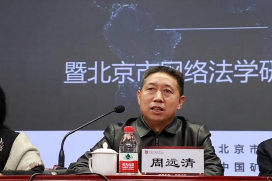北京市法学会联络部副主任周远清先生作会议致辞。周远清副主任介绍了当前市法学会贯彻落实文件、推进市法学会改革等几项重要工作内容,并指出希望法学会继续努力,做好法学研究,推动法治实践,加强自身建设以推动工作更好进行。希望专家学者发挥聪明才智,把精心研究的成果在会议上进行研讨,为推进法治建设,网络法建设做出更大的贡献。