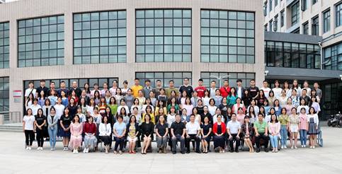 会后,与会老师和2019级新生于教学楼前留下了第一张“全家福”。