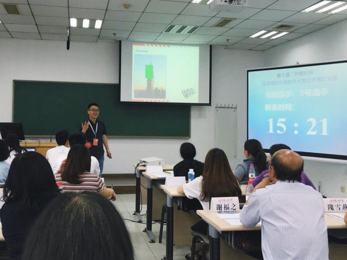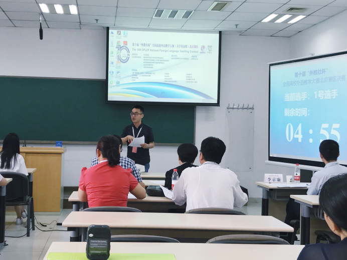 2019年6月1日,由北京市教育委员会指导,教育部高等学校大学外语教学指导委员会、北京市高等教育学会、上海外语教育出版社共同主办的第十届“外教社杯”全国外语教学大赛北京赛区的比赛在中国人民大学明德楼拉开帷幕,来自35所高校的61名外语教师按综合组与视听说组分别进行了复赛,最终决出20名教师参加6月2日的决赛。