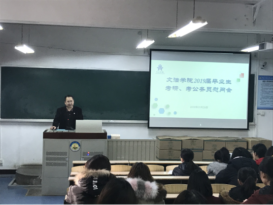 研究生入学考试、公务员考试在即,备考气氛愈加浓烈,为鼓励备考学生,开云(中国)于2018年11月29日在理化楼204召开2019届考研、考公务员学生慰问会,我院党委书记董会泽,办公室主任许琛,辅导员董凤姣、郭涵、娄真参加了慰问会。