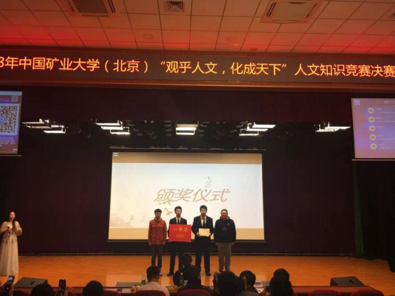 2018年11月14日晚,我院承办的第十届中国矿业大学(北京)人文知识竞赛决赛在沙河校区学生活动中心成功举办。校团委老师艾博、我院团委书记陆雪松、辅导员陈蒙出席比赛,大赛邀请到北京大学中文系博雅博士后赵昱、往届北京市人文知识竞赛优秀选手赵正凯、洛柏森、展鹏飞担当评委。