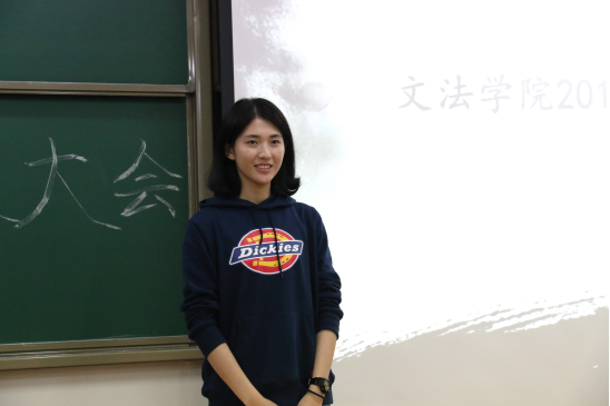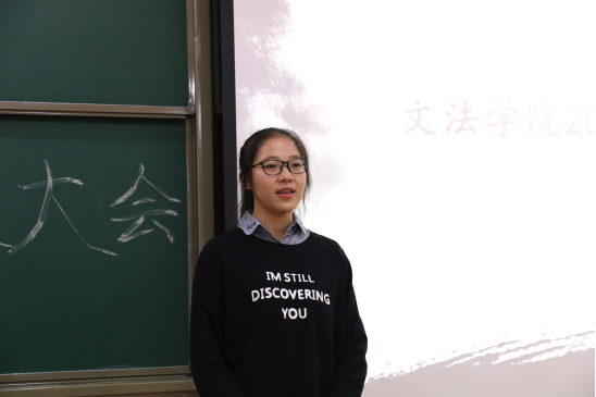 大会第一项,行政管理、英语、法学专业的各班班长和团支书进行展示,并坚定地表明了认真工作学习的态度。