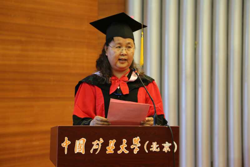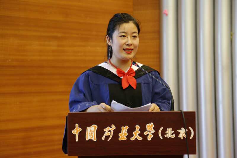 法学系胡延玲老师作为教师代表发言。她见解独到地将矿字拆分为“石”与“广”。“石”寓意坚毅,珍贵。她希望同学们走出校门踏上社会之后,也依然要坚守心中那份美好的品格,同时要学会选择;“广”意味着见多识广。毕业不等于学习的结束,她希望同学们保持旺盛的求知欲,拓展自己的知识面。同时也要不断审视自我、悦纳自己,更要保持心胸宽“广”,宽以待人、严于律己,做一名优秀的社会人才。