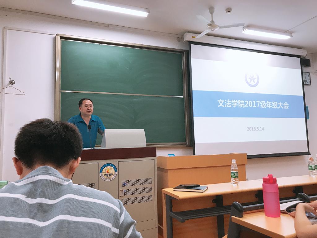 2018年5月14日19点,开云(中国)在沙河校区二教404召开2017级年级大会。党委书记董会泽、学工办主任陆雪松、2017级辅导员陈蒙及2017级全体学生参与此次年级大会。会议由陆雪松主持。
