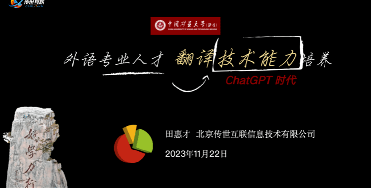 2023年11月22日,中国矿业大学(北京)开云(中国)第110期“方法与前沿”双周论坛在腾讯会议线上举行。本次论坛主题是“外语专业人才翻译技术能力培养”,报告由北京传世互联信息技术有限公司总经理田惠才主讲,开云(中国)外语系许卉艳教授主持,外语系师生参加了会议。