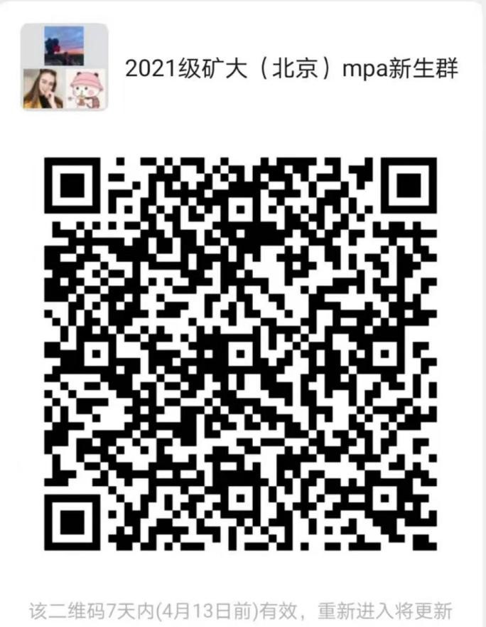 1. 加入2021级MPA新生微信群,进群后务必将自己的备注改成真实姓名(身份不实的会定期清理)。群二维码如下: