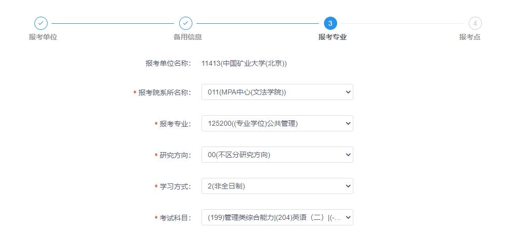 报名时必须在相应的栏目内正确填写报考院系、专业和研究方向、选考科目及其对应的代码凡未按要求报名、网报信息误填、错填或填报虚假信息而造成不能考试或录取的,后果由考生本人承担。填写要求如下: