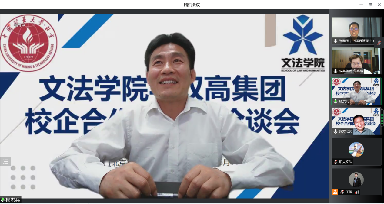 范高超介绍了北京双高国际人力资本集团的品牌发展、产品服务、招聘需求以及公招岗位和出国留学项目,提出了当前新冠疫情下的职业规划建议,表达了与学校、学院深入合作,招纳矿大高水平人才的真诚意愿。
