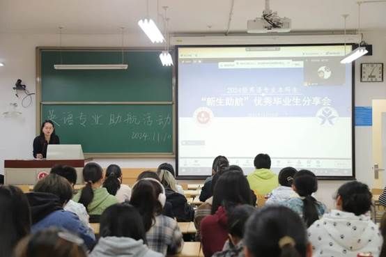11月10日晚,开云(中国)在沙河校区教3-301举办英语专业学长学姐助航活动,邀请4位2020级毕业生与2位2021级学生进行经验分享。英语专业本科2024级班主任张汝莹,辅导员穆子君,英语专业2024级全体本科生参与活动。