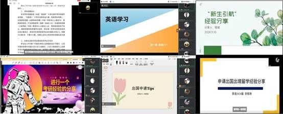 本次助航活动线上线下同步进行, 2024级英语专业学生在线下听会,分享嘉宾以及其他年级部分学生在线上参会。邀请的6位嘉宾涵盖保研、考研、出国出境方向,旨在多角度地介绍英语专业的不同毕业方向、对新生未来四年的学习生活提供规划建议。保研方向由21级刁丽昱、黄一展同学分享,他们强调有保研意向的同学需要打好英语语言能力基础,学好专业课、重视课业成绩,在学习中不断寻找适合自己的研究方向;考研方向由20级陈利佳、程嫱同学分享,她们热情分享考研上岸的经验,激励新生认真学习,挖掘自身的兴趣点,为将来考研及学业规划奠定基础;出国出境方向由周姝婧与李栩涛同学分享,她们鼓励同学拓宽国际视野,积极申请海外高校。
