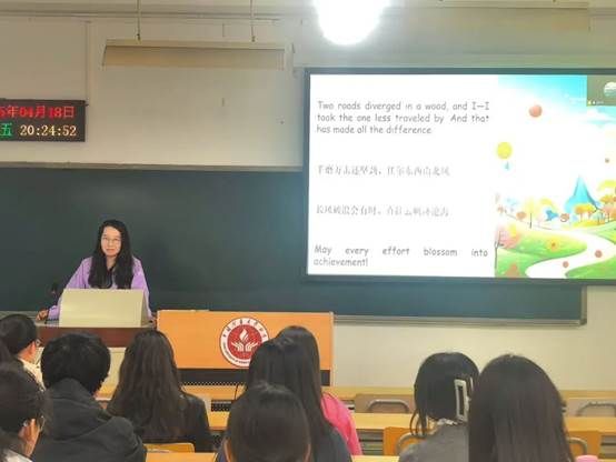 最后,班主任杨婧进行总结发言。她强调,生涯规划需“早思考、早行动、早调整”,希望同学们以优秀学长学姐为榜样,结合自身特点制定个性化方案,并充分利用学院资源主动探索。她寄语全体同学:“长风破浪会有时,直挂云帆济沧海”。愿每一位英语专业学子都能在追梦路上坚定信念,书写属于自己的精彩篇章!