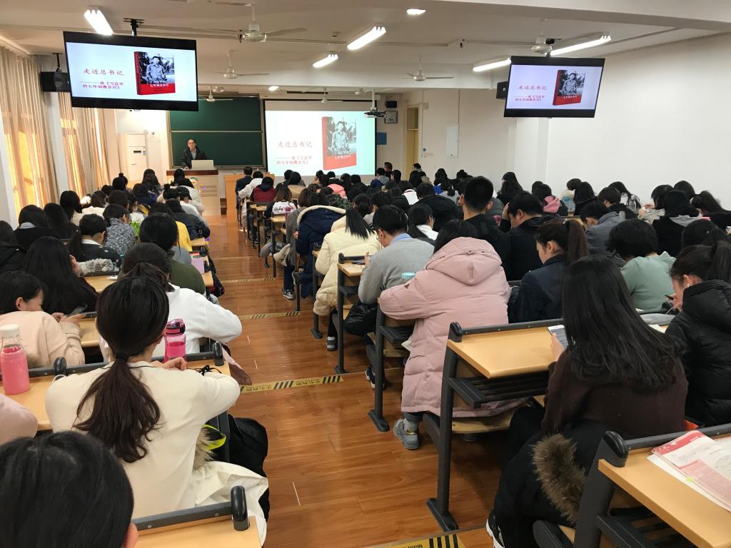 报告会在热烈的掌声中拉开了序幕,苏杭教授用真实的历史细节讲述了习近平总书记当年“苦其心志、劳其筋骨、饿其体肤、空乏其身”的历练故事,再现了习近平总书记知青时期的艰苦生活和成长经历。报告会主要从五个方面讲授了习近平总书记的家国情怀:一是习近平总书记知青岁月的历史背景;二是磨砺意志,热爱人民;三是服务群众,领导有方;四是意识超前,发展经济;五是不忘初心,引领潮流。苏杭教授指出,不忘初心、牢记使命不只是简单口号,需要我们共同的努力。习近平总书记的七年知青岁月是青年一代励志成才的生动教材,是党员干部健康成长的看齐标杆,当代大学生要在习近平总书记的带领下坚定不移走中国特色社会主义道路,为实现“两个一百年”奋斗目标和中国梦奉献磅礴青春力量。