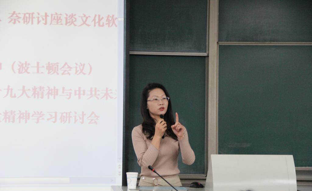 一是学习宣传研究党的十九大概况。丁小丽老师从宣讲情况、成立机构、学术研讨等方面讲述了国内外深入学习研究党的十九大精神的盛况。中国不仅是“中原的中国”、“中国之中国”、“东亚的中国”、“亚洲之中国”,更是“世界之中国”。