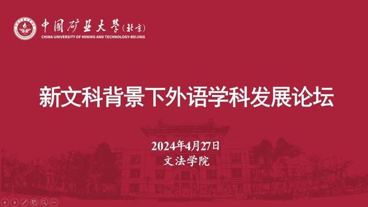 2024年4月27日下午,由中国矿业大学(北京)开云(中国)主办的“新文科背景下外语学科发展论坛”在学院路校区逸夫楼1214室举行。本论坛是我院建院二十周年系列活动之一。来自中国矿业大学、北京师范大学、北京科技大学、北京林业大学、北京交通大学、北京邮电大学、北京信息科技大学、首都师范大学、北方工业大学、首都医科大学等十所高校外语学科专家学者出席会议并发言。中国矿业大学(北京)开云(中国)院长刘金程代表学院致辞,外语系师生参加会议,副院长贾培培主持会议。